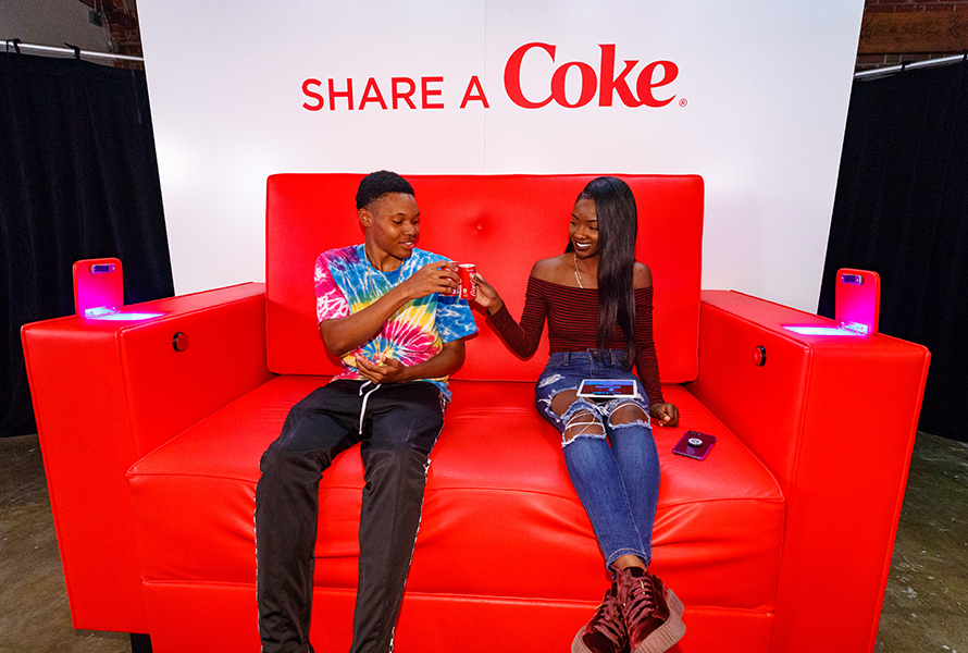Experiential Marketing campaign by Coca Cola. The ‘Share a Coke’ campaign invited people to share while relaxing on a sofa. Source: Adweek.
