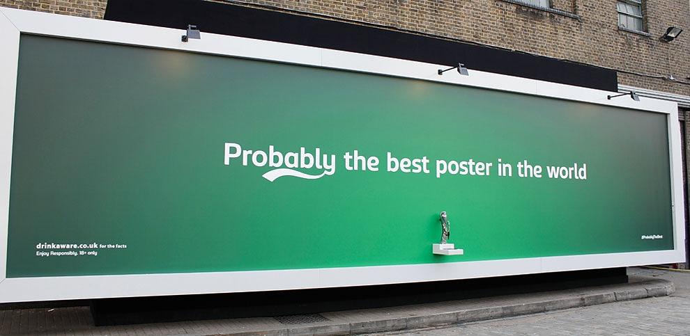 Carlsberg put their product front and center with this ingenious poster ad featuring a beer tap, encouraging people to pour themselves a free pint. Source Design your trust.